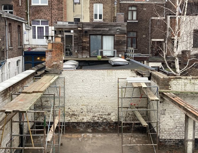 2 mars : Arrivée des palettes de blocs pour la séparation des appartements.