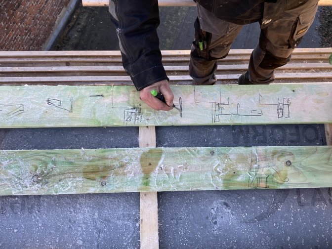 10 mai : Résolution d’un nœud complexe a la rencontre de la toiture des sheds et l’ancien monte-charge.