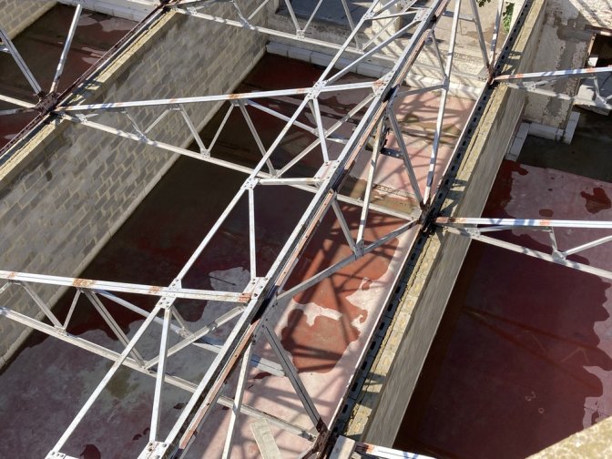29 juin : Les structures métalliques des sheds profitent de leurs derniers moments à l’air libre.