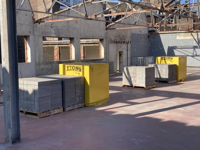 2 mars : Arrivée des palettes de blocs pour la séparation des appartements.