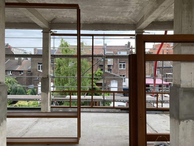 24 mars : Début de la pose des menuiseries du patio de la tour.